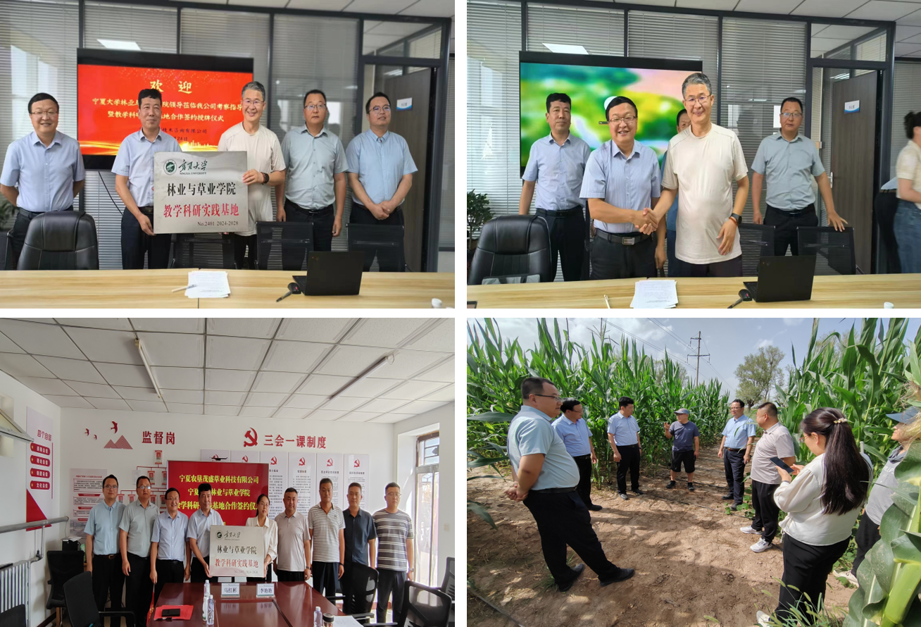 宁夏永明技术咨询有限公司总经理马天虎,宁夏农垦茂盛草业科技有限公司副总经理李艳艳、李东宁及相关部门负责人,学院党总支书记贺海明、院长马红彬、党总支副书记田佳、副院长伏兵哲、园林系主任靳磊和青年教师王国会参加了活动。