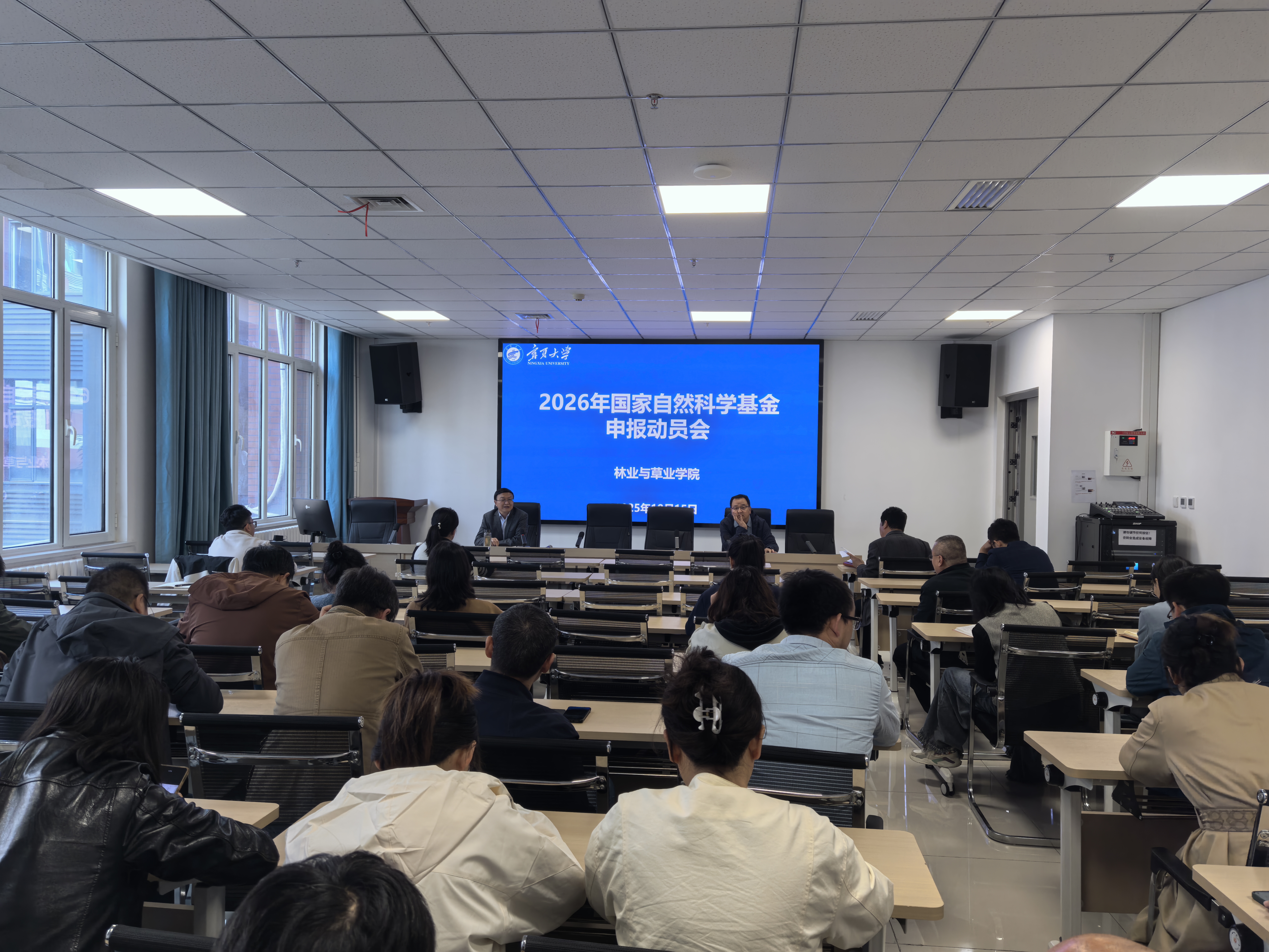 在新农科大楼2楼研讨室组织开展2026年国家自然科学基金申报动员会。全院教师参加了会议,院长马红彬主持会议。