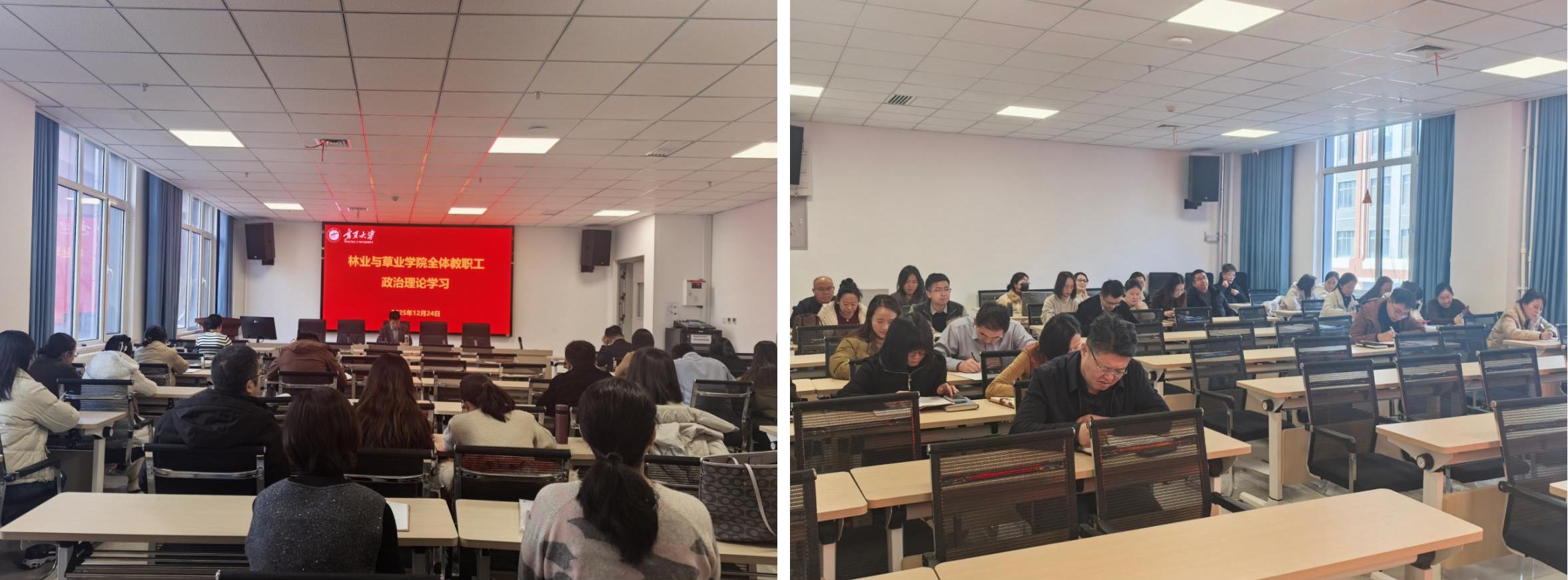 于新农科大楼223会议室召开全体教职工政治理论学习研讨会。全体教职工参加学习,学院党总支书记贺海明主持会议。