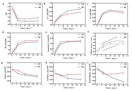 图1 厌氧发酵过程中的营养品质及纤维素变化规律