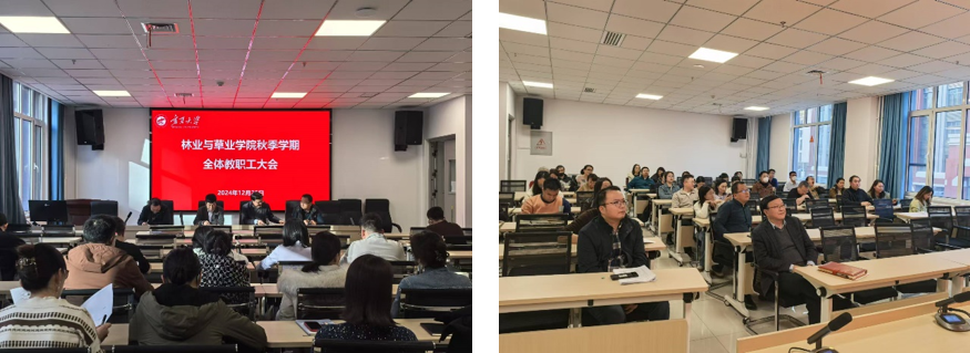 在新农科大楼223研讨室召开了秋季学期第六次全体教职工大会。深入学习党的重要理论成果,传达学习自治区全区科技大会精神,安排部署人才培养和科研工作。学院全体教师参加了会议,学院党总支书记贺海明主持会议。